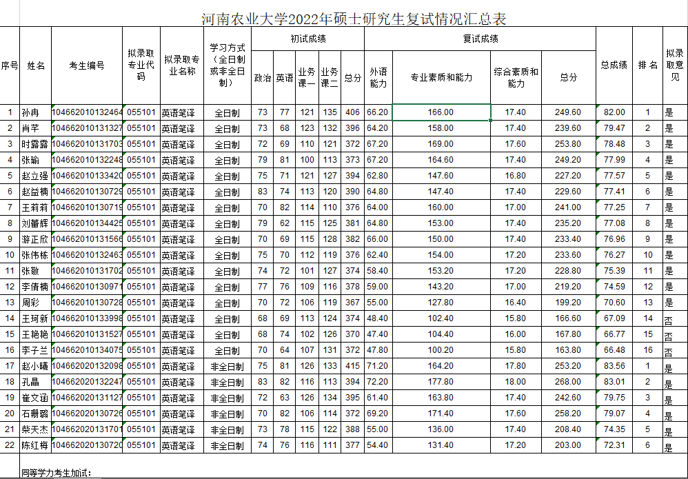 杏吧视频 2022年硕士研究生复试情况汇总表