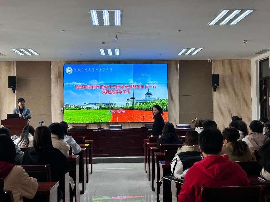 本网讯(审稿:吴玲 供稿:马孝幸 摄影:王铭琪)11月17日上午,郑州市委外事办翻译室主任郑丽娟、郑州农业发展集团总经理郭钰瑶和泰禾会务公司经理张帅洋一行来杏吧视频