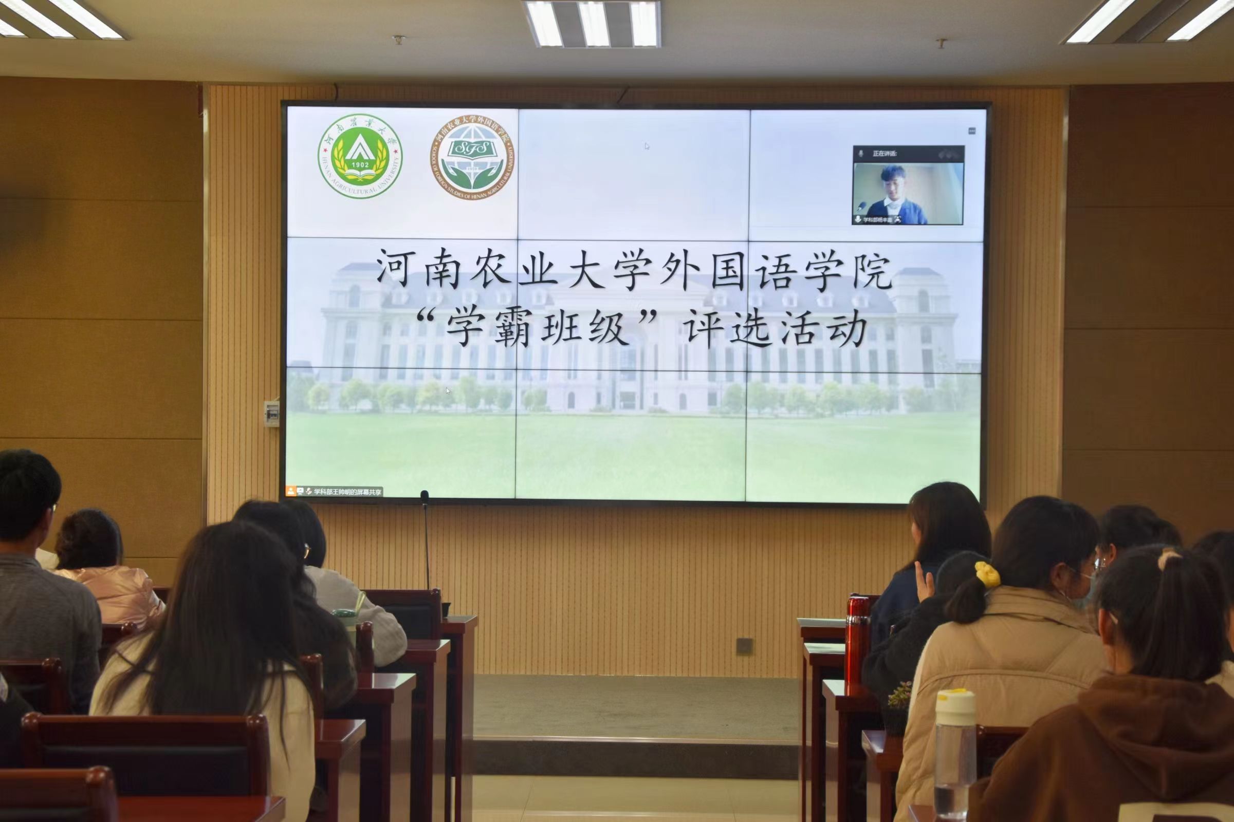 于龙子湖校区A324教室开展“学霸班级评选”活动。经过班级申报和学院初审,有11个班级进入最终评选,本次活动采用21级线下22级线上的方式进行,由学院老师担任评委,杏吧视频