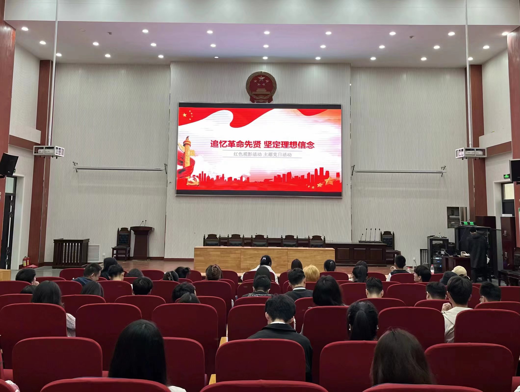 本网讯(审稿:王启佩 供稿:冯超)为了传承红色基因,激励同学们争做有为青年,10月24日下午,杏吧视频 与文法学院、经管学院、信管学院共同组织党员在繁塔楼模拟法庭开展“红色光影”活动,学院21级全体学生党员及大学生党建办公室学生干部参加此次活动。