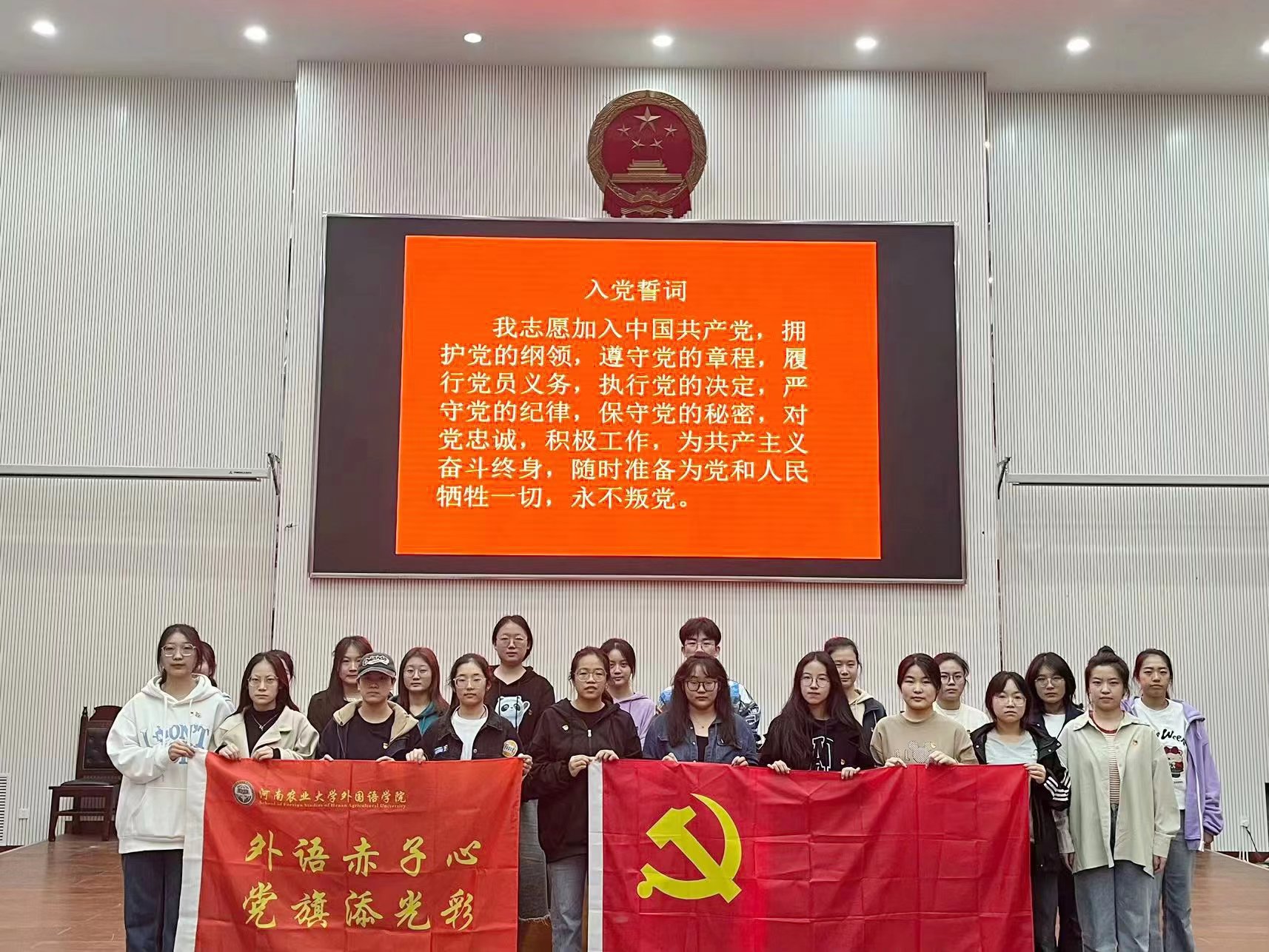 全体成员共同观看了影片《望道》。影片主要讲述《共产党宣言》首个中文全译本翻译者陈望道笃定恒心,望道、追道,而至得道的富有传奇色彩的一生。当听到陈老先生自言:“汝之砒霜,吾之甘饴。我一生,以翻译《共产党宣言》为荣。”与会同学不禁潸然泪下。影片结束后,杏吧视频 21级全体学生党员在鲜红的中国共产党党旗前,重温入党宣誓词,铮铮誓言响彻大厅,青年使命永续于心。