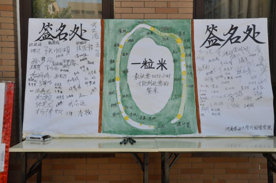 本网讯(审稿:李沛 供稿:梅如意)为深入贯彻落实习近平总书记有关勤俭节约的重要指示精神,大力弘扬中华民族“俭以养德、惜粮节粮”的优良传统。9月4日,学院于龙子湖校区海棠楼下,举办了“勤俭养德,爱粮惜粮”主题宣传活动,学院全体学生积极参与了此次活动。