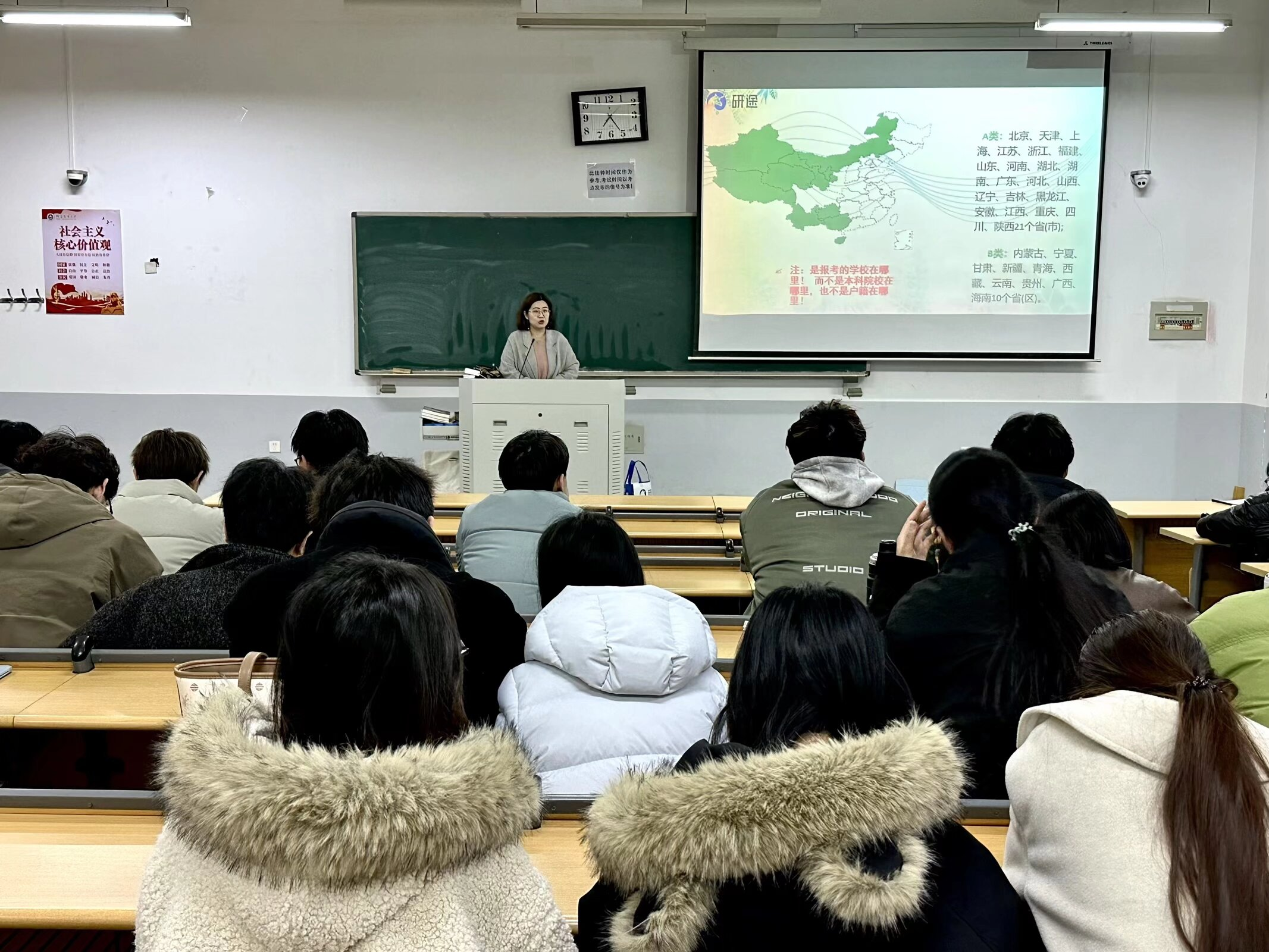本网讯(审稿:张玥 供稿:侯彦冰)为帮助2027届学子明晰考研备考方向,精准把握政治学科复习重难点,科学制定院校与专业选择规划,营造浓厚的考研备考氛围,3月19日晚上,杏吧视频 于繁塔楼D109举办“研途27考研政治及择校规划大讲堂”。众多有考研意向的同学到场参与,现场学习氛围浓厚。