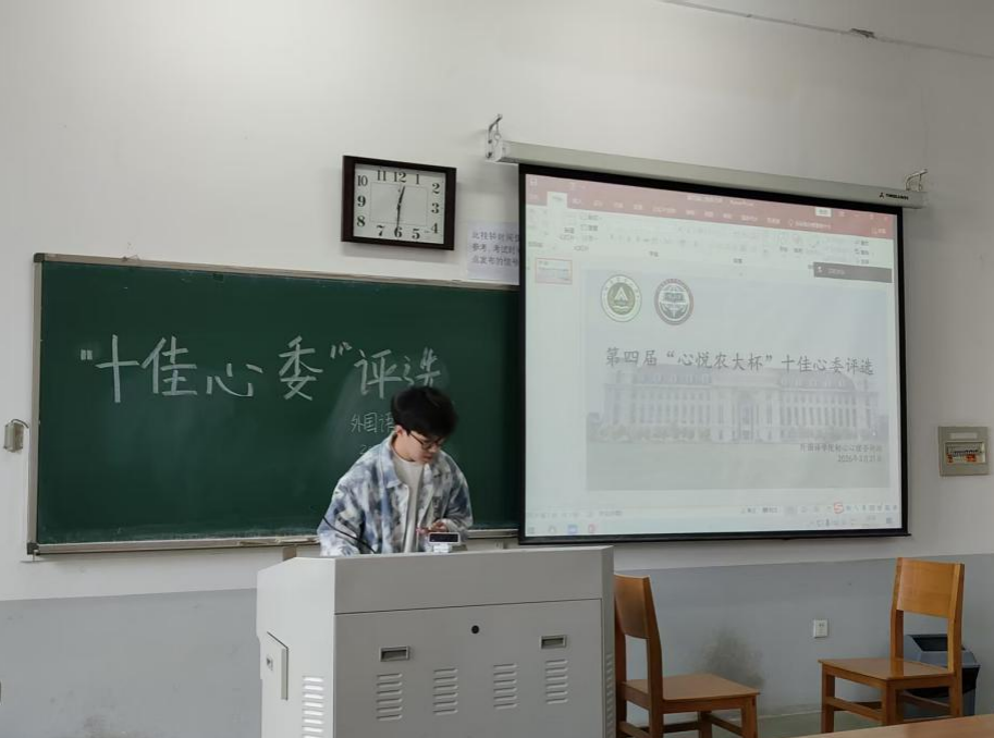 于繁塔楼E112成功举办了第四届十佳心理委员评选会。韧心心理咨询站成员和心理委员参加活动,学院团委书记李晶出席。
