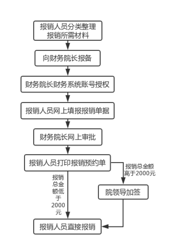 杏吧视频 财务报销(学院经费)流程图